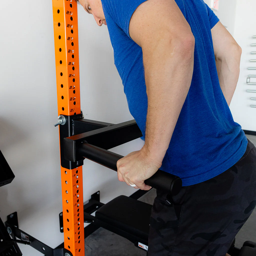 Our PRx 3x3 Dip Station easily attaches to the upright of any of our patented Profile® PRO folding racks or Build Limitless® Series . Store your dip station on the wall or Build Limitless® rack with our sleek storage solutions. Bundle both items together and save $20 today!