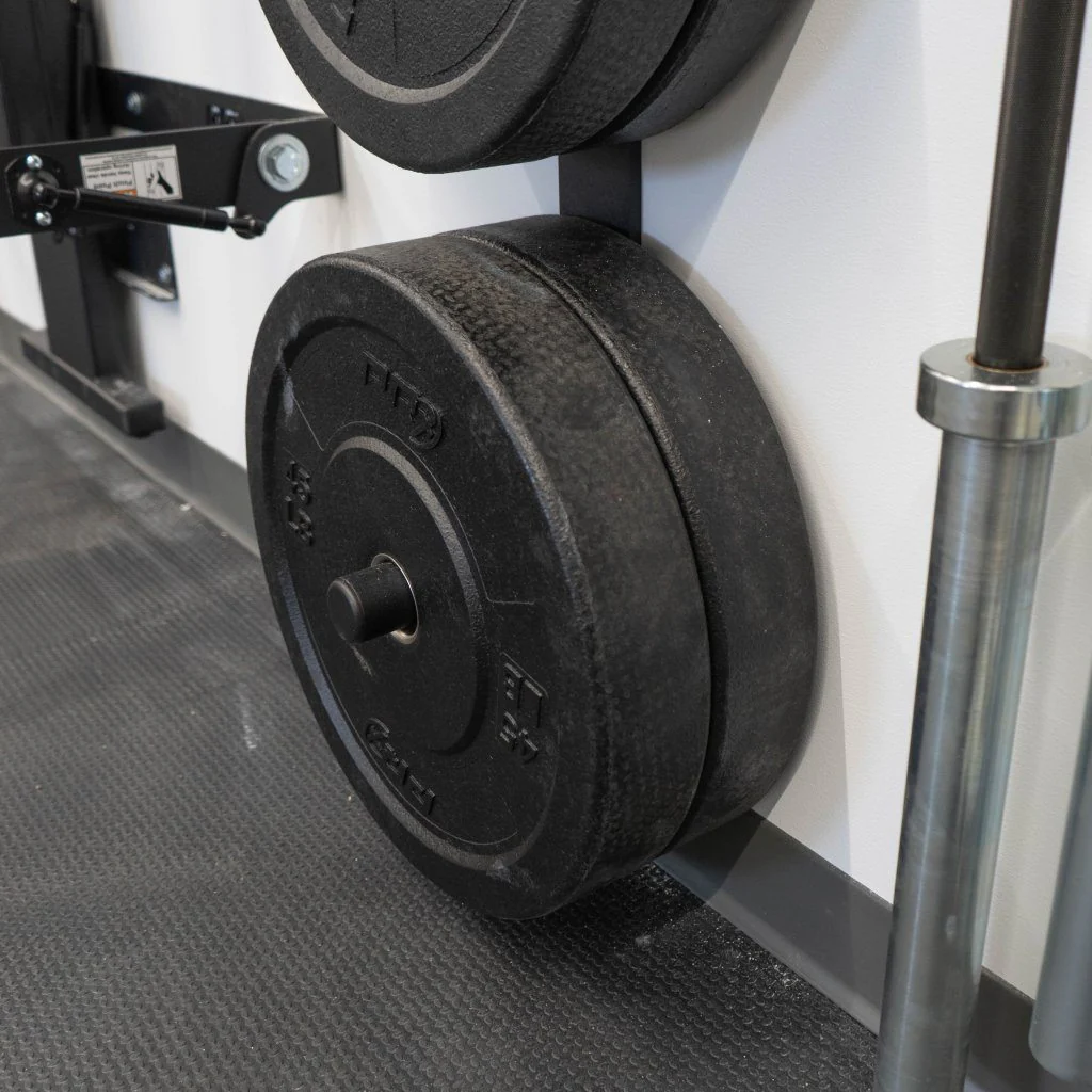 Tired of unorganized piles of weight plates taking up your floor space? Hang āem on the wall! Our top-rated PRx Weight Plate Wall Storage mounts to one stud on the wall and is perfect for any garage, home, or commercial gym.